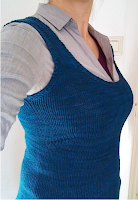 You may also recall that the acquisition of a skein of Wollmeise DK weight made me happy as well, and I wondered aloud if I'd actually make the Flinders vest I was intending for it. Lo, less than a month later, here it is, and I am just so pleased with it. I was worried about running out of yarn, so I could have made it a bit wider, maybe - in the event, it was well long enough. The pattern, I'd give it an A and a B-. That is, the garment is fa-habulous and I love it a lot. The instructions are a bit ambiguous in places and I had to make a few guesses, but hey it was free, so one can't complain too much. This was also my first finished garment with bust darts, so there's another skill to add to my list, that's never a bad thing.